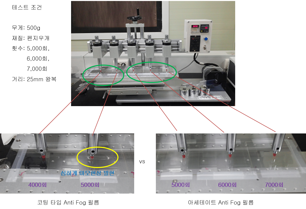 또한, 이러한 다공질 구조는 코팅 대비 뛰어난 내마모성, 내구성을 갖고 있어 필름 표면 마모에도 그 성능을 유지하여 내구성이 요구되는 산업분야에 최적입니다.